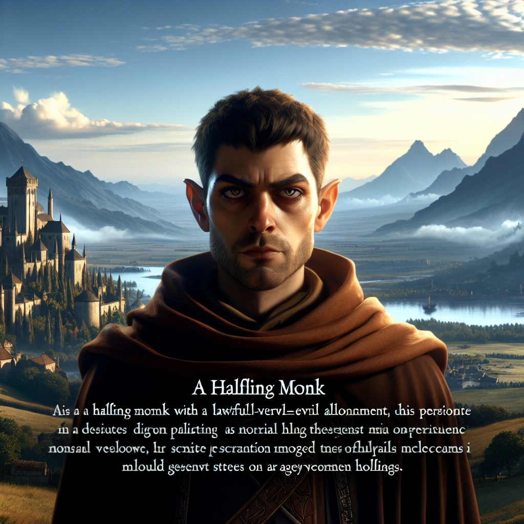 Предыстория: Даррин вырос в криминальных трущобах большого города, где лишь закон силы и хитрости мог обеспечить выживание. Будучи полуросликом, он всегда оставался в тени и делал ставки не на физическую мощь, а на ловкость и хитрость. Осознав свою тягу к порядку, он присоединился к тайному культу, где стал монахом, изучая дисциплину и боевые искусства. Став мастером, он решил, что строгий закон — лучший инструмент для достижения личных целей. Для него дисциплина и контроль — это путь к власти, а все, кто мешает, должны быть устранены, как элементы хаоса в четкой стабильной системе.