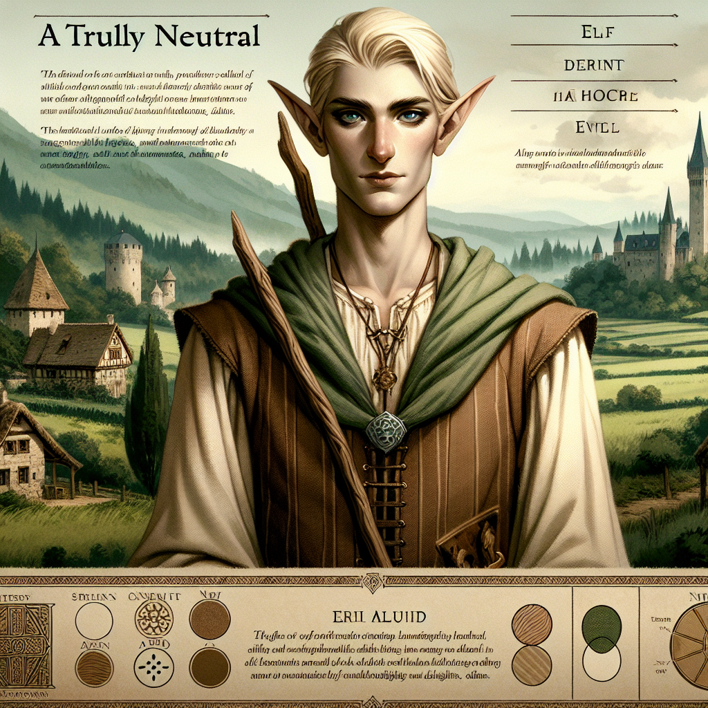 Предыстория: Элдринар был рожден в древнем эльфийском лесу, где его раса веками жила в гармонии с природой. С самого детства он чувствовал глубокую связь с лесными духами и стремился постигнуть их тайны. Его учительницей стала старейшина деревни, которая научила юного эльфа уважать баланс в природе и видеть красоту в каждом её аспекте. Однажды, странствуя по лесу, Элдринар столкнулся с группой людей, которые вырубают лес ради богатства. Сначала он был разгневан, но вскоре понял, что каждый имеет свои мотивы и что истинная гармония достигается через понимание, а не конфликт. Он решил отправиться в путь, чтобы найти способ сохранить баланс не только в лесу, но и за его пределами.